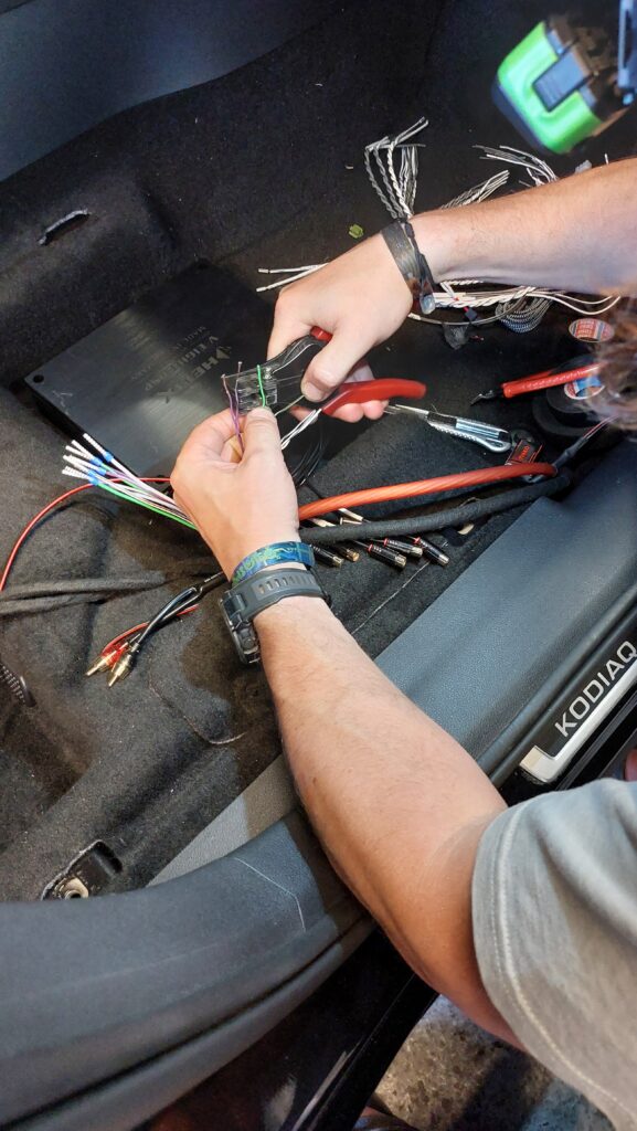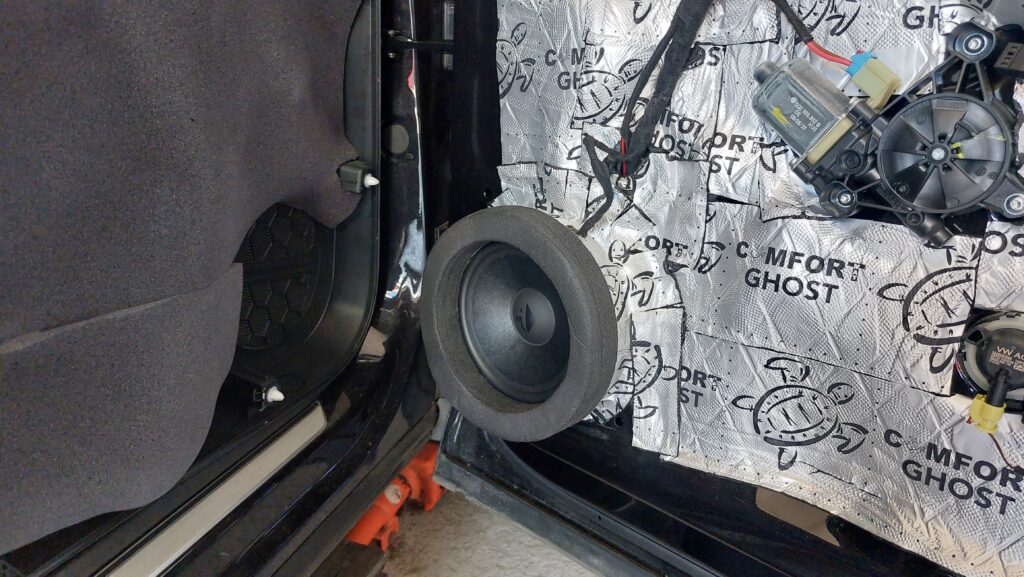 Skvělý zvuk potřebuje ticho. Proto jsme provedli odhlučnění celého vozu – čtyři dveře, podlaha, stropnice, přední i zadní podběhy, kapota i prostor pod stěrači. Díky tomu zmizely hluky motoru a okolní ruchy.
