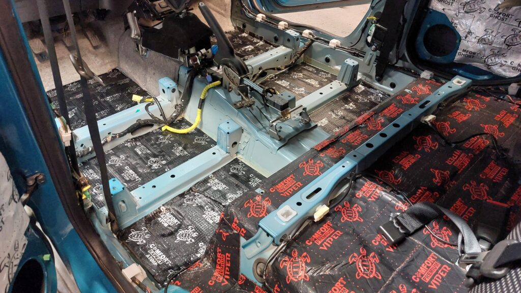 Zadní sedačky? Tam jsme šli do Comformat Viper a přidali i Comformat Raptor – protože kdo říká, že odhlučnění nemůže mít trochu zvířecí sílu?