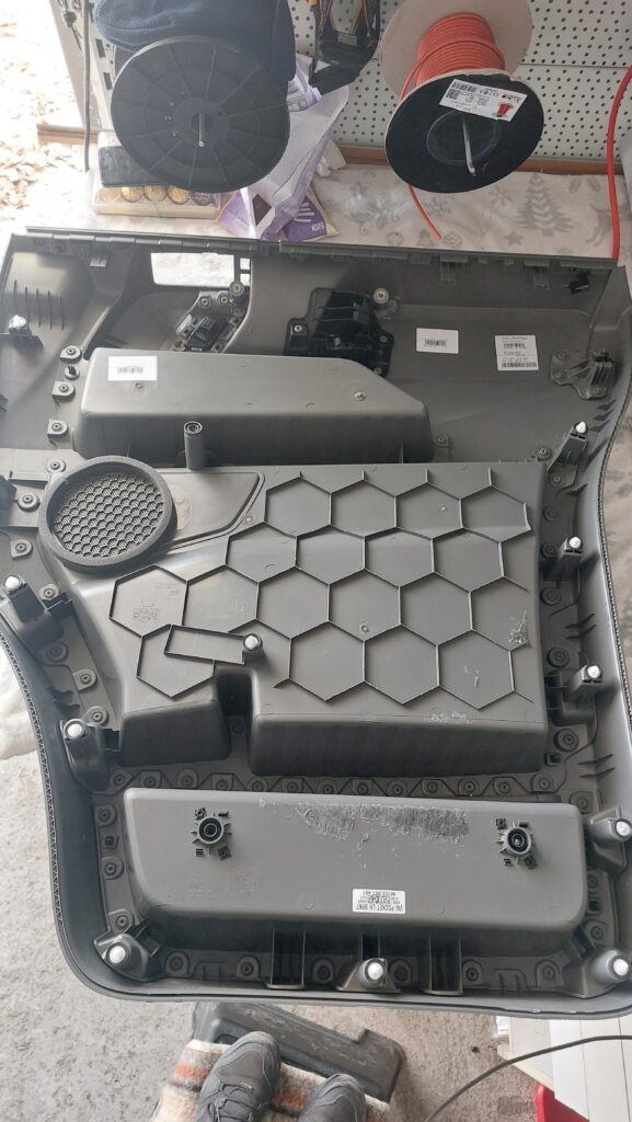 Majitel už měl ve dveřích namontované reproduktory Alpine. Bez potřebného výkonu tyto reproduktory jsou víceméně k ničemu . Navíc v tak velké karoserii je spousta ploch, které vibrují, rezonují a zbytečně kazí čistotu zvuku.
